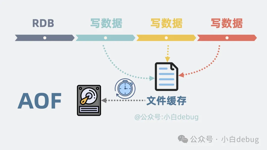 全量数据备份当然耗时,那我们化整为零,在每次写入数据时,顺手将数据记录到文件缓存中,并每秒将文件缓存刷入磁盘,这种持久化机制叫 AOF,Append Only File,服务启动时跟着文件重新执行一遍就能将大部分数据还原,最大程度保证了数据持久化。那问题就来了,AOF 文件会不会很大?没事,定期重写压缩就行,比如 a 被依次赋值 a=1,a=2,最终保留 a=2 就够了。