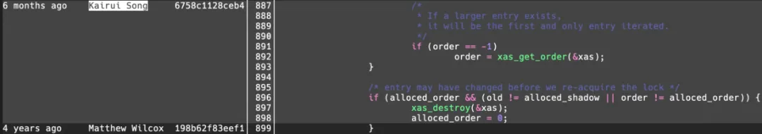 那么,问题出在哪里呢?答案就是 xas_split_alloc:xas_split_alloc 分配的数据因为发生在锁外,所以其可能是过期的,并且过期数据必须及时释放。