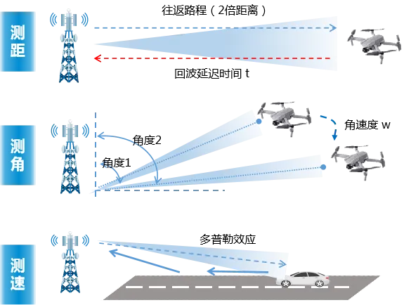 通信感知一体化原理:在进行信息传递的同时,还能通过分析无线电波的直射、反射、散射等特性,对目标或环境信息等进行测距、测速、测角、成像、检测、识别、环境重构等。