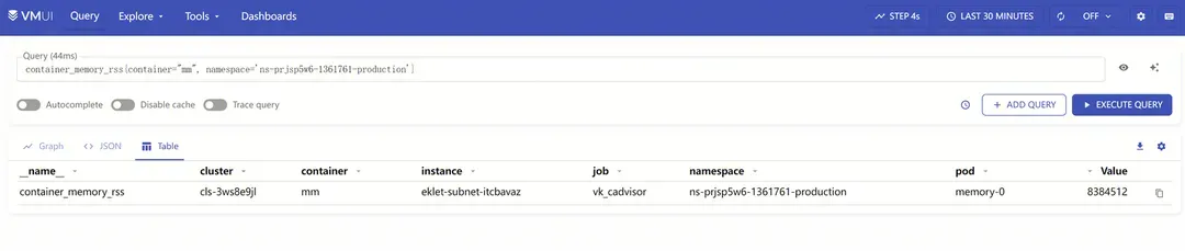 100 * container_memory_working_set_bytes{container="$container", pod="$pod", namespace="$namespace"}