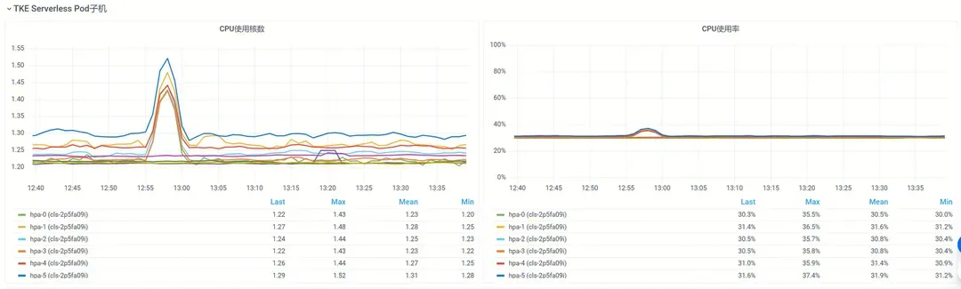 如果你的容器部署在TKE Serverless节点中,TKEx和TKE AppFabric也提供了Pod所在虚机的基础监控,如下图所示。