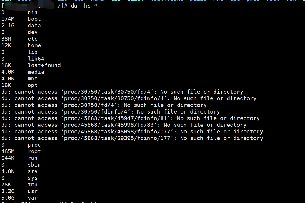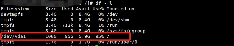 和告警信息一致,接着我们就是要找到导致磁盘空间满的目录或文件。