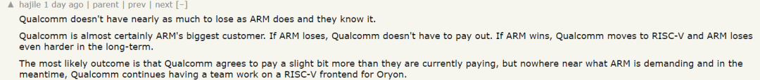 高通公司的损失远没有 ARM 公司的损失大,这一点他们心知肚明。高通公司几乎肯定是 ARM 公司最大的客户。如果 ARM 输了,高通公司就不必赔钱。最有可能的结果是,高通同意支付比目前稍高一点的费用,但远未达到 ARM 的要求,与此同时,高通继续让一个团队为 Oryon 开发 RISC-V 前端。