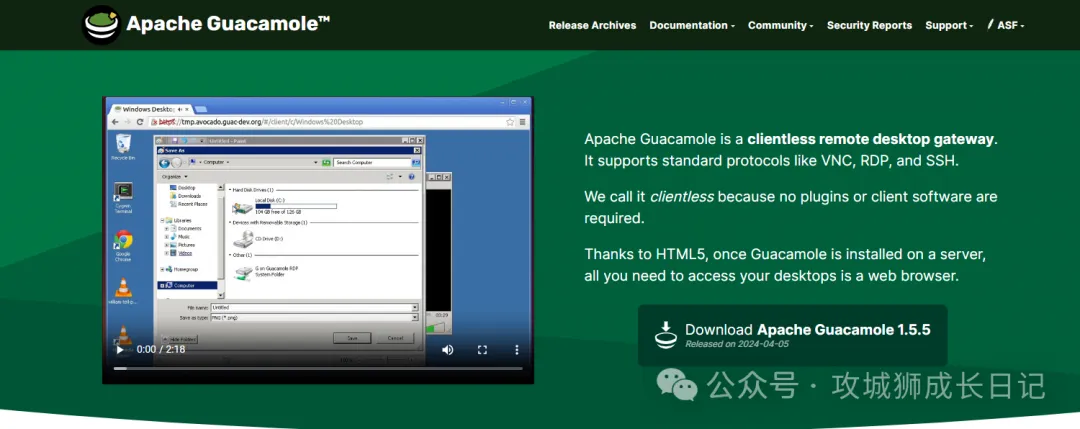 Apache GuacamoleApache Guacamole是一款非常棒的免费开源工具,它让你能够轻松地远程访问桌面,支持包括VNC、RDP和SSH在内的多种标准协议。最棒的是,你不需要安装任何额外的插件或客户端软件,只需要通过一个简单的HTML5网页应用就可以开始使用了。这样既方便又快捷!