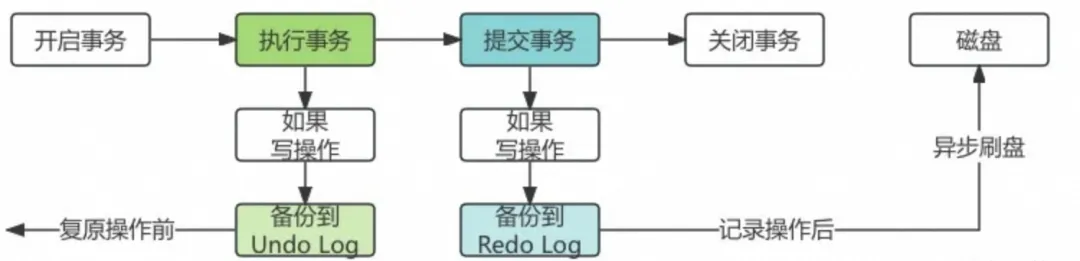 在事务执行过程中,每当对数据库进行写操作(如INSERT、UPDATE、DELETE)时,MySQL会将修改前的数据状态(旧值)保存在undo日志中。undo日志是逻辑日志,它记录的是修改前的数据状态,而不是物理存储的修改。(3) 事务提交或回滚: