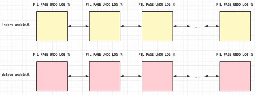 两种不同类型的undo日志页分别用 insert undo 链表 和 update undo 链表管理。