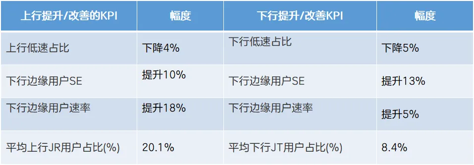 宏微场景开启上行UL only TRP功能后差点验证3组,单UE级上行速率增益20%~50%。FNR宏站开启JE叠加1+N规格JR功能后,在高干扰场景单UE级上行速率增益40%+。TNR宏站开启下行CJT功能部署后定点验证2组,下行速率增益20%~35%。图片