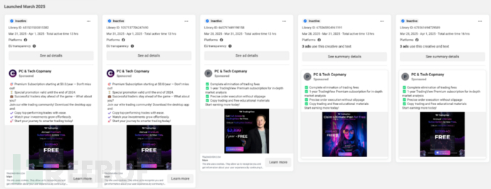 攻击者还创建了与TradingView等平台官方页面高度相似的虚假脸书专页,甚至伪造了宣传虚假赠品活动的帖子和评论。这些虚假页面中的链接会直接将用户导向恶意软件分发网站。
