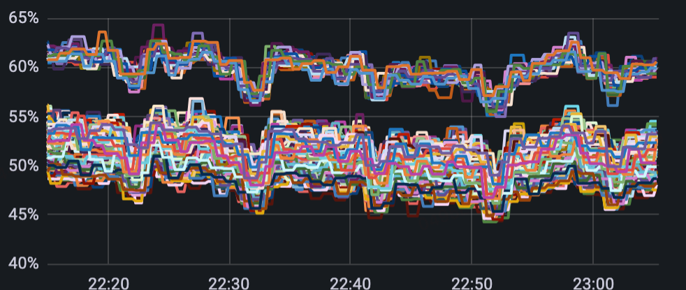 尽管资源合池化局有上述的许多优点,但是异构系统的统一调度增加了技术复杂度,其矛盾主要来自于硬件的设计差异,进而影响到了系统层面的表现差异,其中最为明显的是,应用在不同硬件上的运行效率差异会给容量规划带来困难,例如同一实例面对相同的负载压力在不同的硬件上运行的CPU需求量存在区别,具体会呈现为CPU使用率的分层现象。此时业务很难根据CPU算力需求进行容量规划,若是依据高位线进行负载规划,在低位线的机器上会存在资源浪费。如果按照低位线尽心负载规划,则会由于硬件能力的不足导致业务的SLA无法被满足。因此明确并尽可能的消弭不同硬件的所导致的应用表现差异至关重要。本文会以CPU分层现象为视角切入来排查和解决此类问题。