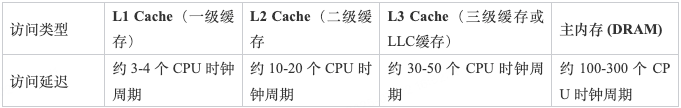 4.1. 问题描述Cache造成的性能差异则发生在不同型号的CPU之间,由于不同型号 CPU 在硬件设计和缓存架构上的差异,同一份业务代码在不同机型上会产生不同的缓存命中率,从而导致性能表现出现差距。典型的CPU在不同层级cache的访问速度差异如表1所示。