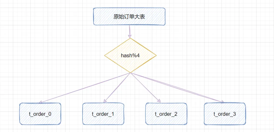 优点:Range范围分表,有利于扩容。缺点:可能会有热点问题。因为订单id是一直在增大的,也就是说最近一段时间都是汇聚在一张表里面的。比如最近一个月的订单都在300万~600万之间,平时用户一般都查最近一个月的订单比较多,请求都打到order_1表啦。6.2 hash取模