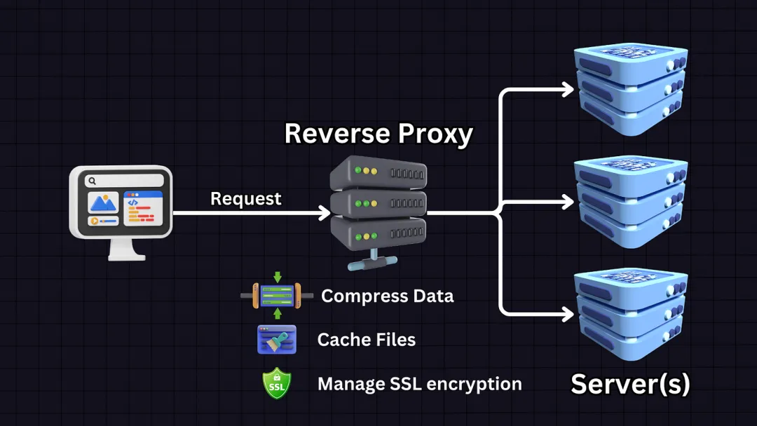 此外,反向代理还可以压缩进出数据、缓存文件以及管理 SSL 加密,从而加快加载时间并减少服务器负载。
