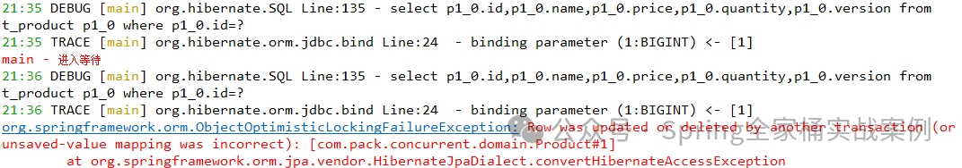 线程2会很快执行完;当线程1等待执行结束后执行save方法时,抛出如下异常: