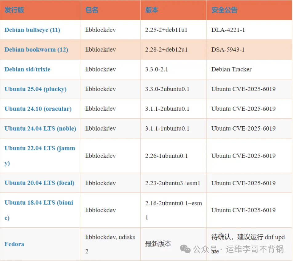 Ubuntu/Debian/Fedora/AlmaLinux 等用户请尽快安装 libblockdev 与 udisks2 的安全补丁。