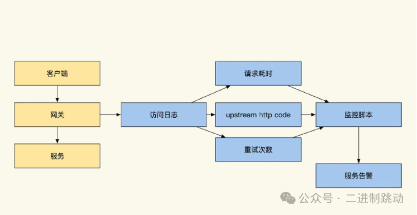 具体来说,网关的访问日志会记录每个请求的 HTTP 状态码(如 200、500、404 等)和响应时间。这些信息可以帮助我们监控服务的健康状况,例如判断是否有异常的错误码(如 500 错误)或请求超时,进而及时发现潜在问题。