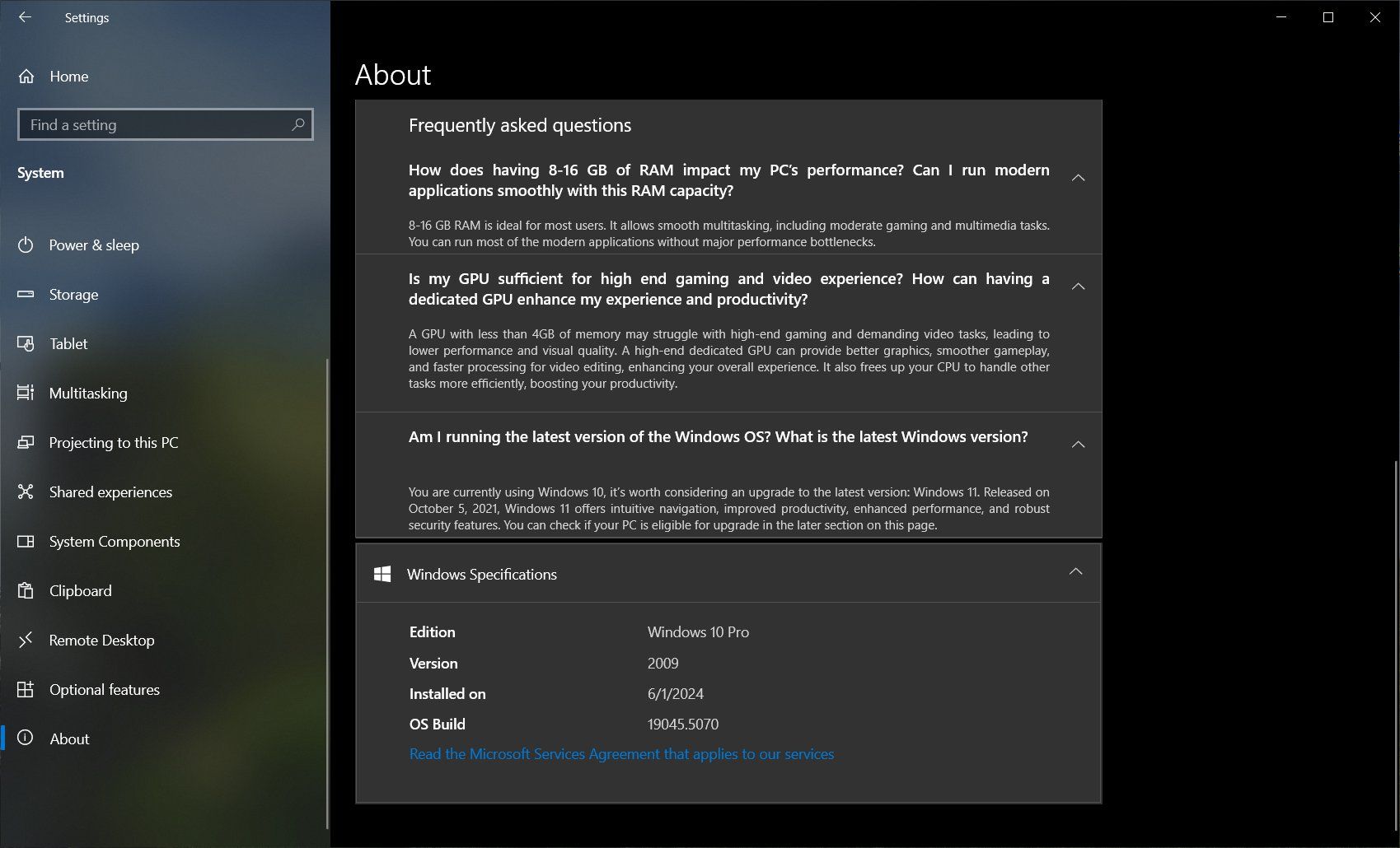 微软还在此设置页面中直接添加了常见问题,帮助用户更好地理解设备。这些常见问题将解释用户当前的硬件规格以及它们对性能的影响,从而让用户更容易充分利用系统资源。IT之家附上相关截图如下,没有启用的用户可以使用“vivetool /enable /id:48478026”体验。