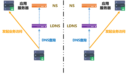 应用系统在两个数据中心都提供相同的服务,不同的数据中心发布不同的服务地址,需求是发布同一个域名,用户访问这个域名的时候能够访问到离自己物理位置最近的数据中心的服务节点,如果这个服务节点故障,则自动访问到另一个数据中心的服务节点,用户对访问到哪个数据中心服务节点无感知。