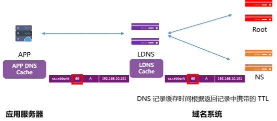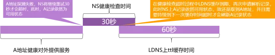 针对延时要求敏感的业务,递归服务器建议开启“缓存刷新”功能,在缓存到期时递归服务器主动向权威域名更新解析记录,保证客户端都从缓存里获得解析结果。如果DNS产品不支持缓存刷新,可以在前端负载均衡上增加对应域名的健康检查,利用负载均衡来快速更新缓存。