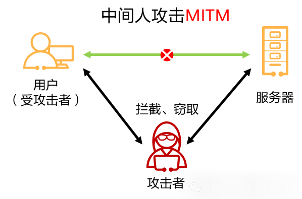 中间人 (MitM) 攻击迫使攻击者拦截和操纵在两方之间传输的信息