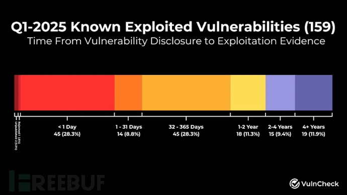 2025 年第一季度 159 个 CVE 漏洞遭利用 28.3% 在披露 24 小时内被攻击
