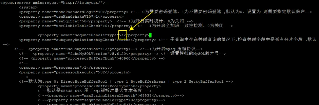 首先修改主键自增方式为 4 ,4 表示使用 zookeeper 实现主键自增。server.xml