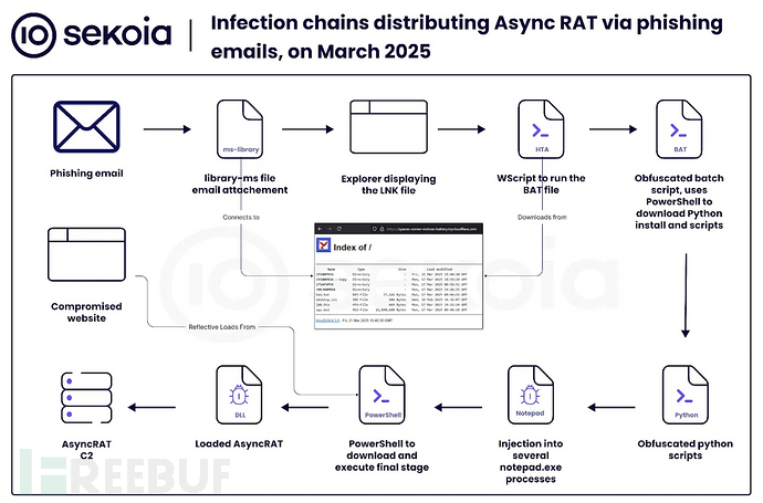 通过涉及Windows-library文件、LNK文件、HTA执行和Python注入的复杂多阶段过程分发AsyncRAT的感染链