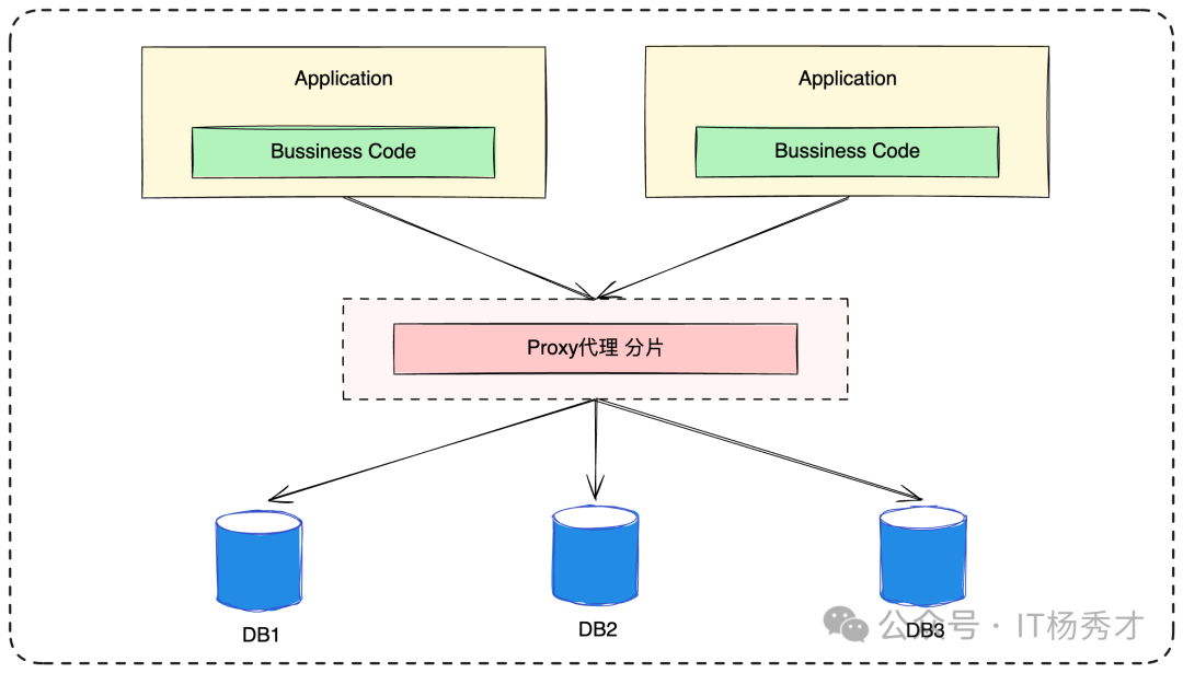 实现数据分片的逻辑,通常由分库分表中间件来完成,它们主要有三种架构形态: