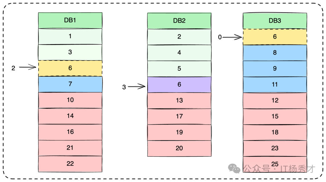 在分库1中age_min的offset为2,分库2中age_min的offset为3,分库3中age_min的offset为0。